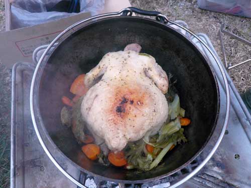 (キャンプ場に帰り、今夜の食事のローストチキン♪